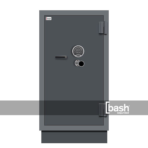 Fabricadas en plancha de acero laminado, aislante contra incendio de 7 mm de espesor nominal. Mecanismo de cierre controlado de 6 a 8 pasadores y manilla desde el exterior. Sector del mecanismo y cerradura protegido con una placa de acero templado. Bandeja interior fija.